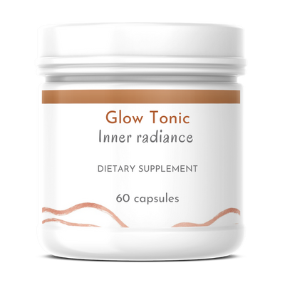 Glow Tonic is a potent botanical blend designed to detoxify your system for a clearer, more luminous complexion from the inside out.